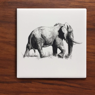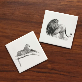 Sold as a set of 5, these tiles are prints of original graphite drawings that have been carefully transferred and kiln fired for protection onto tiles to be used as coasters. A must-have for the dog lover, outdoorsman and one who appreciates uniqueness. The tils come with a soft protective underlayer that will prevent your furniture from scratching.