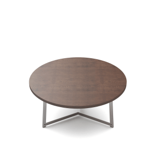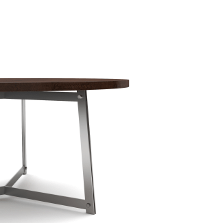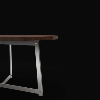 Stainless steel plates finished to perfection are bolted together to build the base of this centre table. This supports a teak wood veneer top with a wooden trim designed to complement a modern interior.