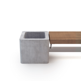 Powder coated mild steel frame , Solid wood seat with oil finish, Shaped stone planter