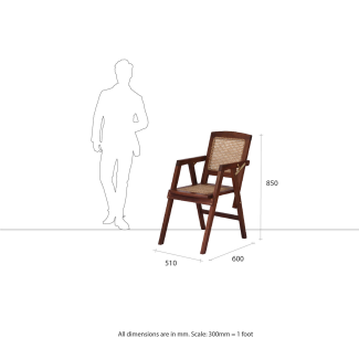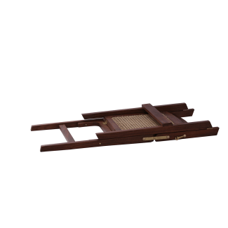 A chair that cleverly folds flat. It locks into place with hand made brass links and locks. The seat and back rest have traditional hole-to-hole hand caning which adds to the elegance of the design. A chair that will want you to use it.