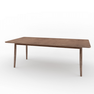 The rounded edges and corners of this dining table are mindfully ergonomic, making it a beautiful addition to traditional as well as ultra modern interiors. Made out of especially selected teak wood stock with pressed veneer and a soild wood trim, this table is made to last.