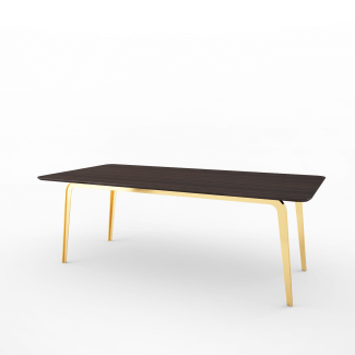 Designed to look tasteful and refined, this dining table has a richly finished brass-plated base supporting an elegant dark wenge veneer top. The table is detailed with a beautifully curved solid wood edge.