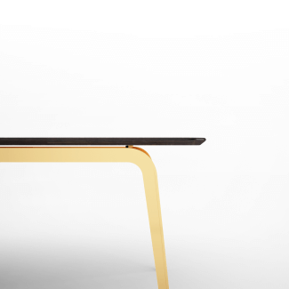 Brass plated mild steel base frame, Wenge veneer top with solid wood trims in matte finish