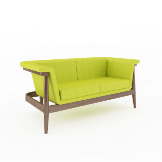 A visually light sofa with an ergonomic recline, this dramatic piece combines a cushioned seat that rests lightly on a sturdy wooden frame for ease and style. The frame is made out of high quality teak wood which is polished and stained to perfection. The seat shell and cushions are upholsterd in a soft and textured fabric.