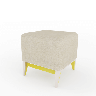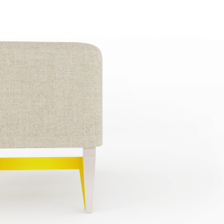 Engineered to be conveniently flatpacked, this comfortable cushioned stool has wooden legs with clear polish unified by a painted steel brace that accords a harmonious contrast in materials.