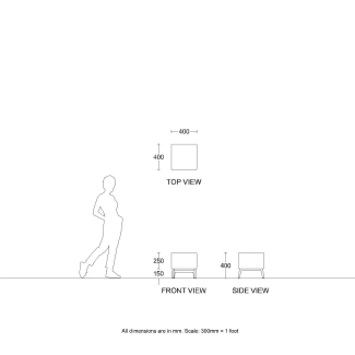 Fabric upholstered seat, Powder coated mild-steel frame with solid wood legs