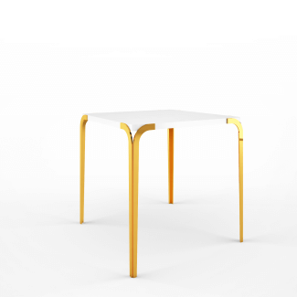 Sleek, understated and elegant, this side table has richly finished steel legs that are shaped around the corners of the top and are held together with a brace. The PU finished wooden top complements the minimalist lines of this design.