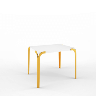Sleek, understated and elegant, this side table has richly finished steel legs that are shaped around the corners of the top and are held together with a brace. The PU finished wooden top complements the minimalist lines of this design.